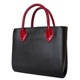 Женская сумка Sabbina выполнена из натуральной кожи с выделкой типа "Сафьян" и красными контрастными ручками. Сумка состоит из двух основных отделений, разделенных карманом-перегородкой на молнии. Внутри также один карман на молнии и два открытых кармана. Кожаный плечевой ремень регулируется по длине...