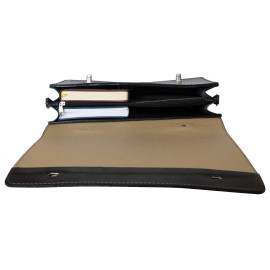 Портфель Rofelle (Рофелле) выполнен из шорной толстой натуральной кожи черного цвета.