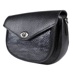 Женская сумка Azaria (Азария) выполнена из натуральной кожи черного цвета. Вставка на переднем кармане выполнена из темно-серой кожи под рептилию.